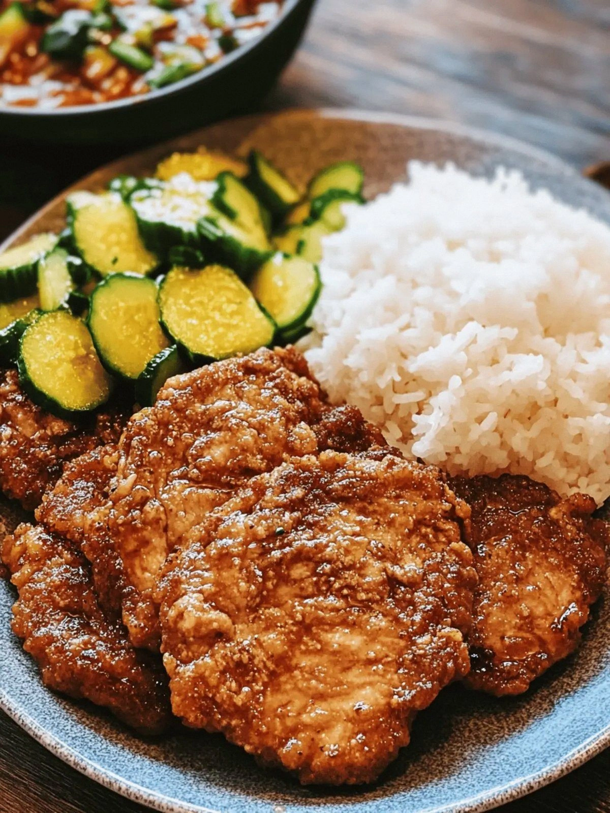 The first thing that hit me was the aroma—a savory, sweet, almost caramelized scent that made my mouth water. The sizzling sound was a drumbeat, a rhythmic promise of crispness. As the pork hit the pan, the oil hissed, and the air filled with a faint, sweet tang that made my eyes water. The sound of the first crackle was like applause from the skillet, and the heat kissed my skin with a gentle, comforting warmth. Every breath felt like a prelude to a delicious symphony that was about to play.
