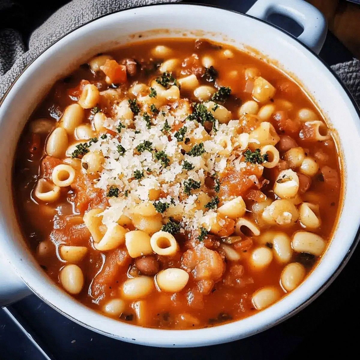 - Serve immediately, ladling the pasta and beans into bowls. Garnish each serving with an extra sprinkle of Parmesan and a few parsley leaves. Pair it with a crisp green salad or crusty bread to soak up the savory broth. The dish’s comforting warmth will fill your home with an inviting aroma, making everyone feel at ease. Enjoy the satisfaction of a meal that’s both simple and sophisticated.